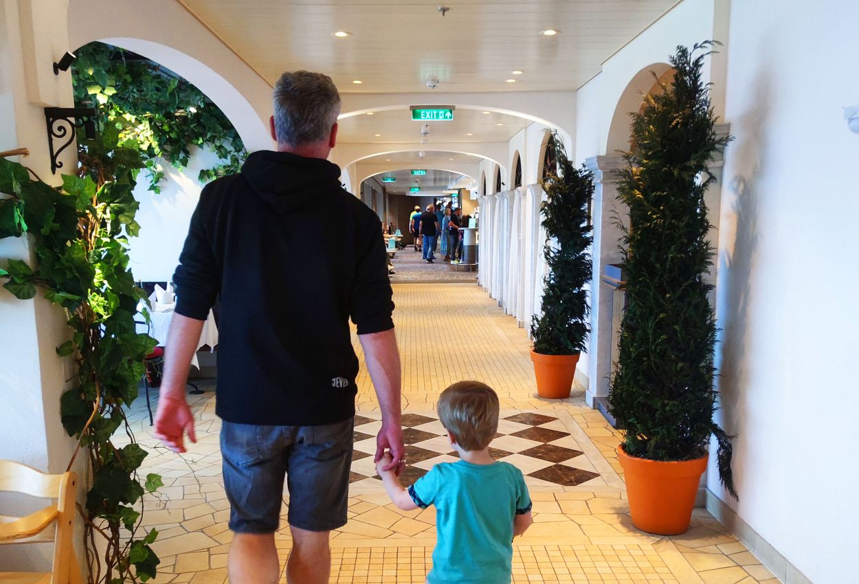 Man muss sagen, so ein Babybett nimmt schon großen Platz im Raum ein. Definitiv machbar, aber da unser Junge schon 2,5 Jahre ist und auch Zuhause bereits ein großes Bett hat, haben wir kurzerhand entschieden, das Sofabett für ihn zu nutzen. Der sehr nette Kabinensteward hat das Kinderbett wieder mitgenommen und wir konnten an Bord noch einen Rausfallschutz fürs Sofabett ergattern. Somit war unsere Kabine wirklich großzügig und wir hatten einen begehbaren Kleiderschrank, in dem die Koffer und sogar unser Buggy Platz hatten.