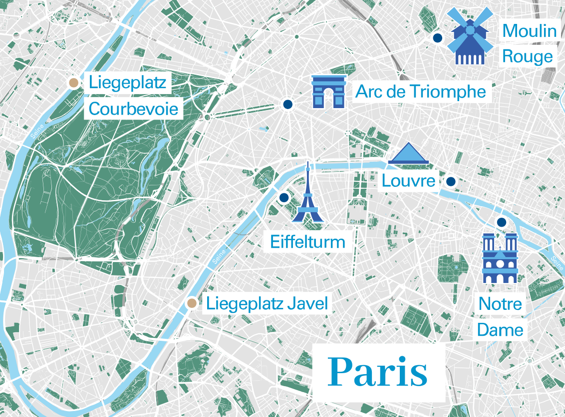 Am Ende der Flussreise sind wir wieder in Paris angekommen, dort lagen wir noch zwei weitere Tage im Hafen - fußläufig zum Eiffelturm.