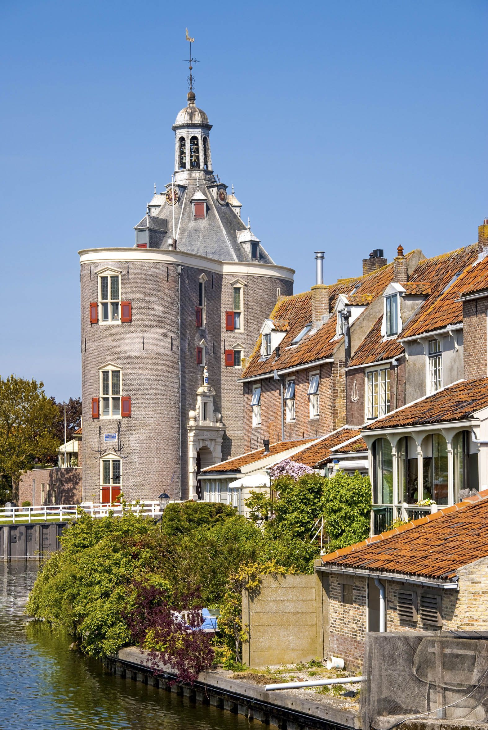 Enkhuizen war im 16. Jahrhundert vor allem für seine Heringsfischerei bekannt. 1572 gehörte es zu den ersten Städten, die sich gegen die spanische Herrschaft erhoben und ihre Schiffe trugen im folgenden Jahr zum Sieg über die spanische Flotte bei. Ein kleines Zentrum mit schmalen Gassen und historischen Gebäuden lädt zum Bummeln ein... doch auch mit dem Rad durch die vielen anderen Gassen zu fahren, oft am Wasser entlang oder durch kleine Parks mit immer wieder neuen Ansichten, lassen das Herz erfreuen. Besonders im Sommer ist das bunte Treiben um den Oude Hafen mit seiner schönen weißen Holzzugbrücke und dem Drommedalisturm absolut sehenswert, insbesondere wenn dann auch noch die vielen Kinder von der Brücke und den Kaimauern unter freudigem Gejohle ins Hafenbecken springen. Gut, dass wir über Nacht hier liegen, so haben wir auch noch nach dem Abendessen an Bord Zeit, diesem Treiben beizuwohnen.