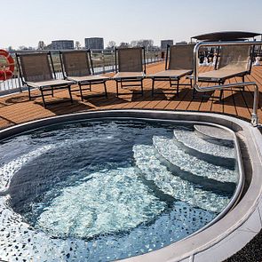- Entspannung im kleinem Pool auf dem Sonnendeck mit Liegestühlen, Sitzgruppen sowie Schattenplätzen