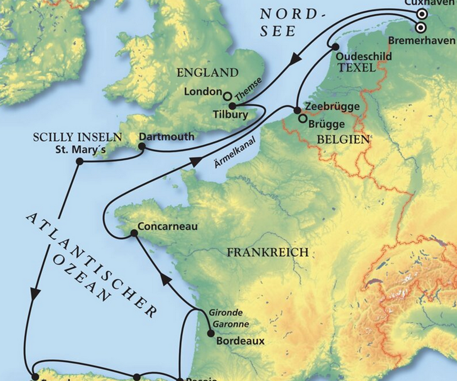 Kleiderempfehlung: Die meisten Gäste an Bord bevorzugen legere Kleidung. Zum Abendessen empfehlen wir sportlich-elegante Kleidung.