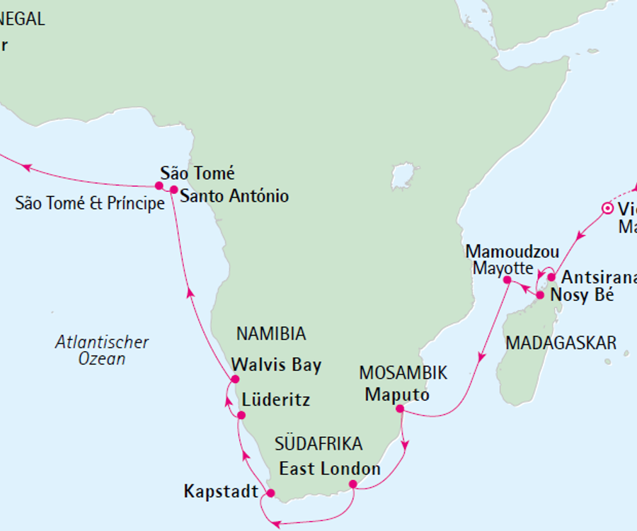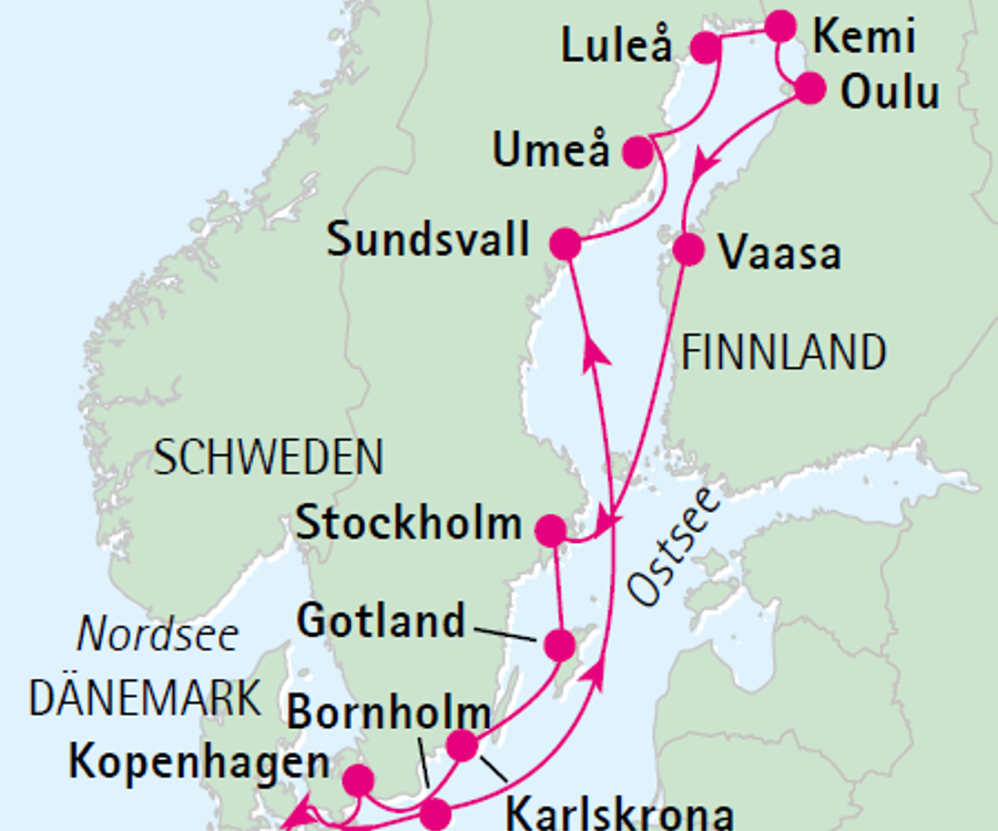 Die MS Hamburg fährt außergewöhnliche und teils selten angebotene Routen, darunter: