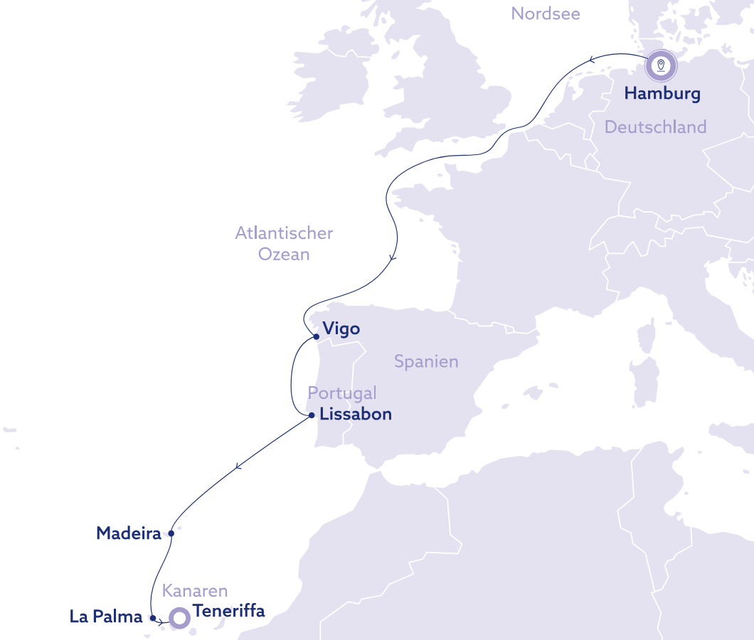 Die Reiserouten der Vasco da Gama sind ebenso vielfältig wie spannend: Von Nord- und Westeuropa über die Ostsee bis hin zu den Kanaren, Madeira und dem Mittelmeer bietet sie eine große Auswahl an Destinationen. Besonders beliebt sind auch längere Reisen, die bis nach Südafrika, Asien oder Australien führen. Damit verbindet die Vasco da Gama das Gefühl klassischer Seefahrt mit modernen Annehmlichkeiten – und eröffnet ihren Gästen die Möglichkeit, die Welt auf eine stilvolle und entspannte Weise zu entdecken.