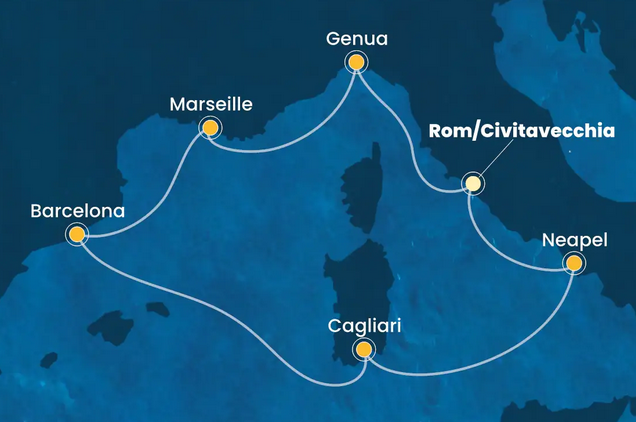 | Bordsprache italienisch und englisch, Bordansagen werden i.d.R. auch auf Deutsch gemacht | Besonderheiten Trinkgelder im Reisepreis enthalten; ausgewählte Getränke im Buffet-Restaurant inkludiert, Kabinenservice verfügbar |