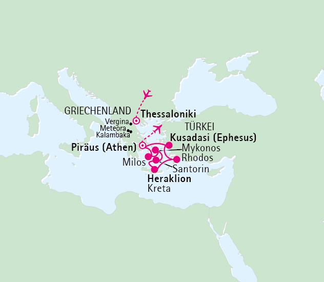 Einer unserer Klassiker beinhalten die Flüge und einen 3-tägigen Hotelaufenthalt in Opatija in Kroatien. Unternehmen Sie für Sie schon organisierte Ausflüge in die Umgebung und lernen Sie die die wunderbare kroatische Adria kennen. Im Anschluss erwartet Sie dann das einzigartige Mittelmeer mit unterschiedlichen Zielen. Hier wird die griechische Mythologie entdeckt, u.a. auf Kreta oder Rhodos, in Athen oder Thessaloniki. Und auch die italienische Küste wartet auf Ihren Besuch, z.B. Venedig oder Bari.