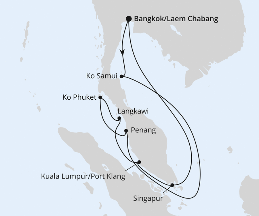 Ein perfektes Reiseziel auf den Kreuzfahrten durch Asien ist Thailand mit seiner einzigartigen Natur, uralten Kultur, den vielen Sehenswürdigkeiten und auch seiner Feierkultur. Lassen Sie sich hier von den alten Tempelanlagen, dem ungestümen Urwald der Region oder einer atemberaubenden Tuk-Tuk beziehungsweise Fahrradfahrt durch die kleinen Gassen Bangkoks beeiendrucken. Startpunkt ist meist Laem Chabang. Die Stadt Laem Chabang besitzt den größten Hafen Thailands, weshalb hier viele Kreuzfahrtschiffe anlegen.