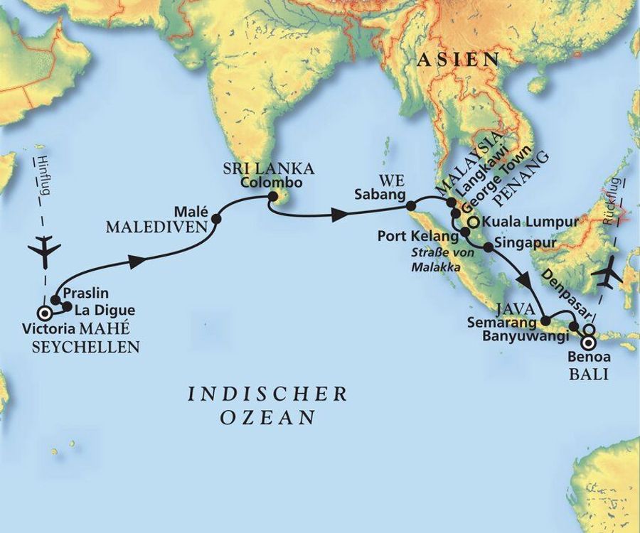 Reedereien wie Princess Cruises, Phoenix, Norwegian Cruise Line, Cunard, Royal Caribbean, Costa oder Nicko Cruises bringen Sie nach Australien und Neuseeland. Wie wäre es zum Beispiel mit einer Weltreise-Teilstrecke mit der Vasco Da Gama über Neukaledonien, Samoa und den Cook-Inseln? Oder Sie entdecken Indonesien, Polynesien, den Inselstaat Fidschi, Südamerika und Australien auf einer kleinen Weltreise mit der Vasco da Gama.