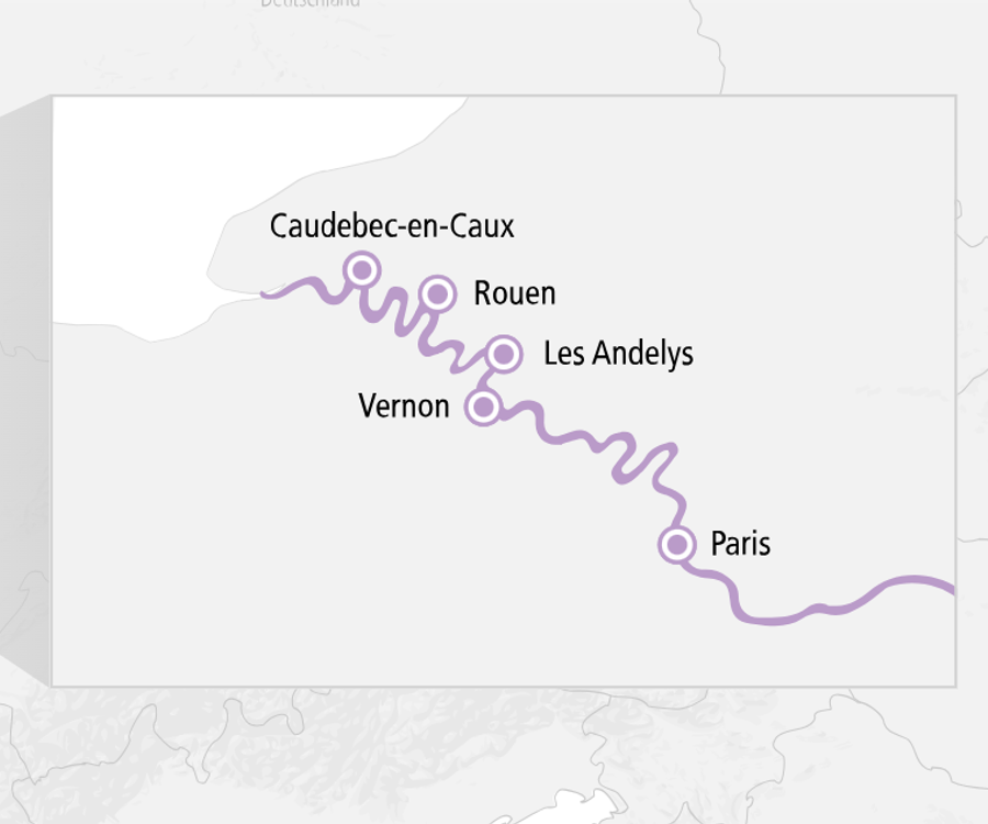 Rouen, Caudebec-en-Caux, Les Andelys und Vernon gehören ebenfalls zu einer Seine Flusskreuzfahrt, genauso wie andere kleine Städtchen, die alle ihren eigenen Charme besitzen. In Rouen erwarten Sie zahlreiche gotische Bauwerke und alte Fachwerkhäuser. Auch viele Kirchen können besichtigt werden. Von Vernon aus können Sie ideal Ausflüge nach Giverny planen. Wussten Sie, dass der berühmte Künstler Claude Monet hier einst wohnte? Erkunden Sie den Garten des früheren Anwesens, welcher in zahlreichen Bildern wiederzufinden ist, während eines Landgangs und lassen Sie sich inspirieren.