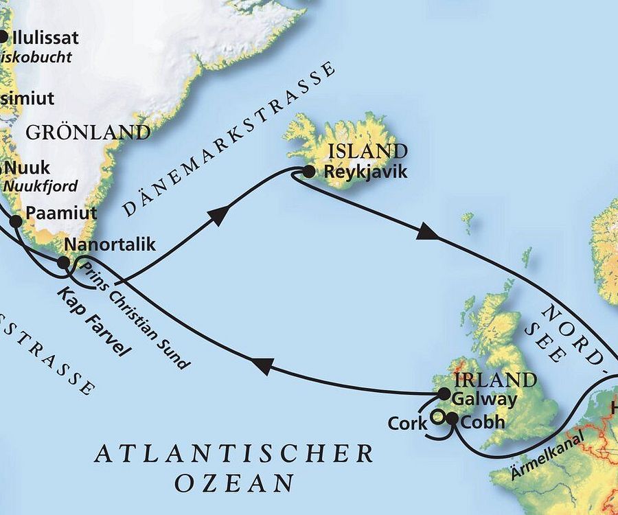 Eine Kreuzfahrt nach Island und Grönland bietet eine einzigartige und faszinierende Möglichkeit, einige der spektakulärsten Landschaften und Naturphänomene der Welt zu erleben. Ob zerklüftete Küstenlinien, majestätische Gletscher oder aktive Vulkane: Beide Länder bieten spektakuläre Erlebnisse, die Sie so schnell nicht wieder vergessen werden. Erkunden Sie die Geysire von Island, die Gletscherfjorde Grönlands und die spektakulären Nordlichter. Und das Beste: Auf einer Kreuzfahrt m erleben Sie all diese Erlebnisse auf einer Reise. Komfortabel und ohne viel Kofferpacken!