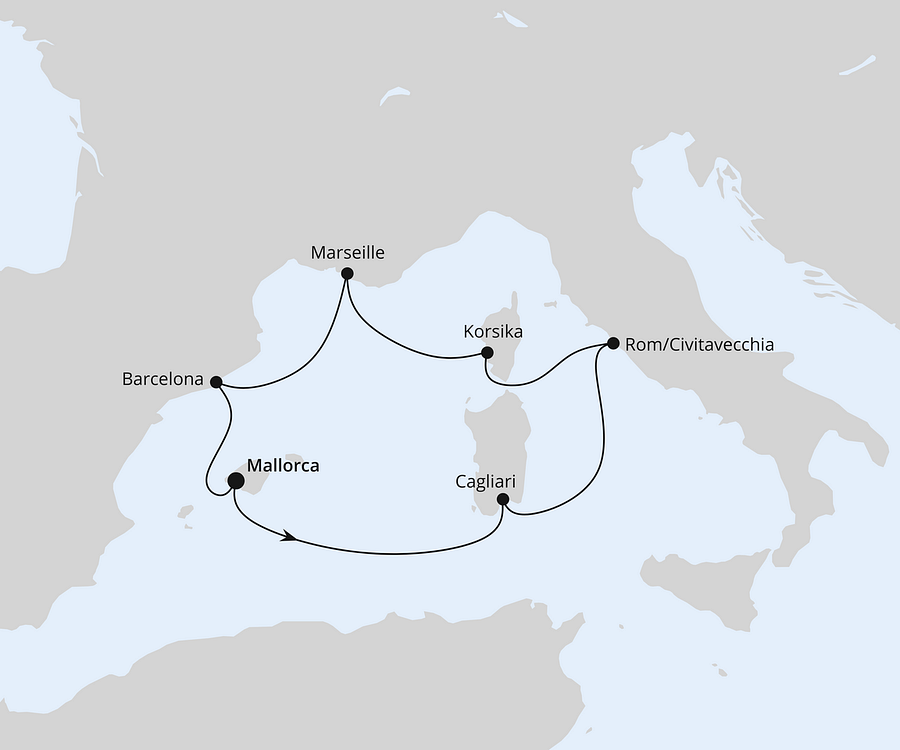 Der Hafen von Marseille ist oft Ausgangspunkt einer Kreuzfahrt in der Mittelmeerregion. Die zweitgrößte Stadt Frankreichs punktet mit einer faszinierenden Altstadt und eine reiche kulturelle Vielfalt. Auch Städte wie Saint-Tropez oder Monaco sind beliebte Ziele. Entdecken Sie exklusive Yachthäfen, schicke Boutiquen und lebhafte Strände. Kennen Sie schon die französische Insel Korsika mit dem Nationalpark Parc Naturel Régional de la Corse?