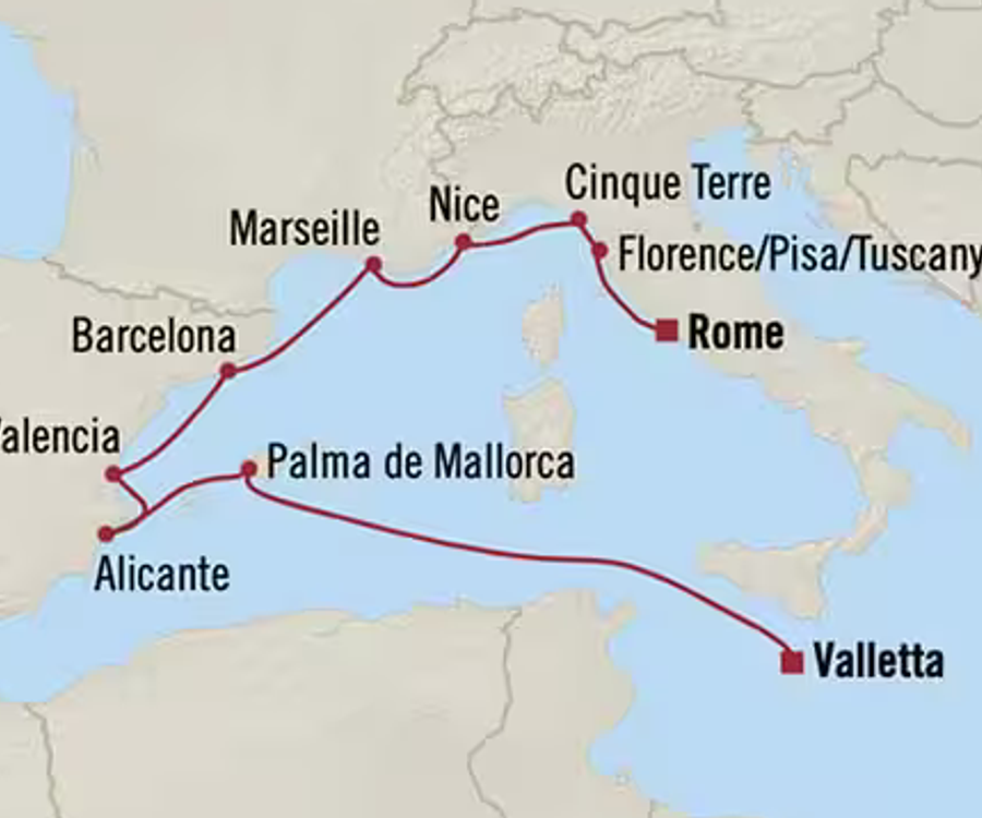 Tipp: Runden Sie Ihre Schiffsreise mit einem Besuch in Valletta ab, der malerischen Hauptstadt Maltas, oder fahren Sie nach Jerusalem zur herrlichen Dormitio-Kirche, in der die heilige Jungfrau Maria in den „ewigen Schlaf" fiel.