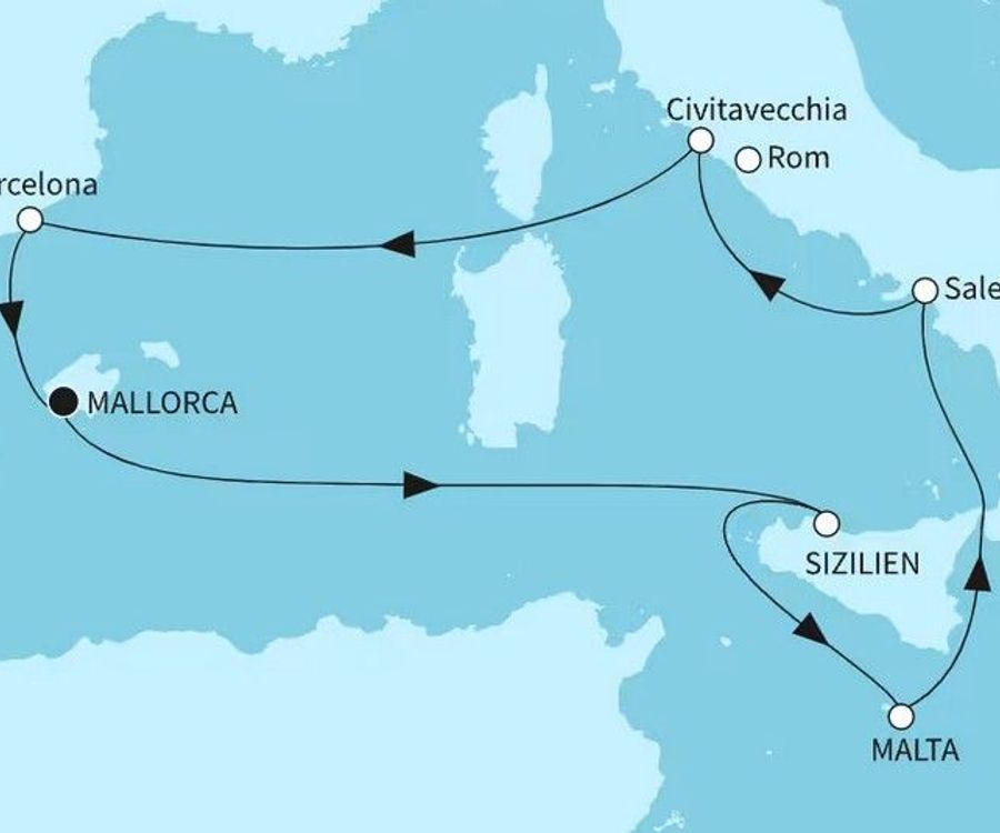 Während einer Mittelmeerkreuzfahrt kommt jeder auf seine Kosten: Zahlreiche Entspannungsmöglichkeiten sowie eine Vielfalt an Sportangeboten wie Segeln oder Surfen in wunderschönen Buchten sprechen die Bedürfnisse jeden Urlaubers an. Die facettenreiche und farbenprächtige Unterwasserwelt können Sie während eines Tauchausflugs kennen lernen. Interessante Metropolen, historische Bauwerke aus einer anderen Zeit, sowie verwinkelte Gassen und weltbekannte Plätze mit zahlreichen Cafés laden zum verweilen und bestaunen ein. Sightseeing in Rom, antike Ruinen in Griechenland, Kunst und Kultur in Barcelona und viel mehr: Nirgendwo lassen sich Jahrtausende alte Zeugnisse der antiken Kultur bewundern wie im Mittelmeerraum.
