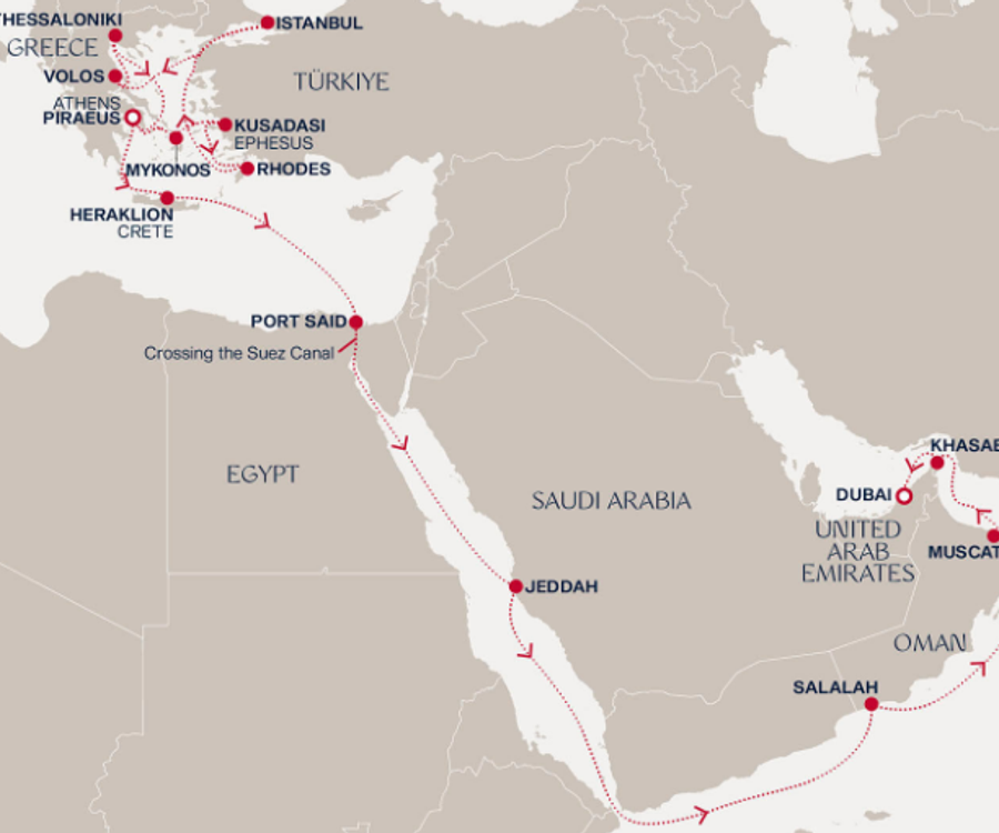 Viele Mittelmeer-Kreuzfahrten im Osten beginnen oder enden in der türkischen Metropole Istanbul. Mit Stolz präsentiert sie ihre Jahrhunderte alte Geschichte, die Sie während eines Ausflugs zur Hagia Sofia oder dem beeindruckenden Topkapi Palast kennenlernen können. Ob Kultur, Shoppen oder Schlemmen, in dieser Stadt sind die Möglichkeiten grenzenlos. Weiter sind Städte wie Kusadasi oder Bodrum beliebte Ziele während Mittelmeer-Reisen. Kusadasi ist Ausgangspunkt für Besucher, die die antike Stadt Ephesos erkunden möchten, eine der besterhaltenen antiken Städte der Welt. Hier warten lokale Produkte und Handwerkskunst auf Sie.