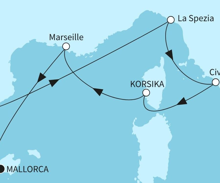 Der Hafen von Marseille ist oft Ausgangspunkt einer Kreuzfahrt in der Mittelmeerregion. Die zweitgrößte Stadt Frankreichs punktet mit einer faszinierenden Altstadt und eine reiche kulturelle Vielfalt. Auch Städte wie Saint-Tropez oder Monaco sind beliebte Ziele. Entdecken Sie exklusive Yachthäfen, schicke Boutiquen und lebhafte Strände. Kennen Sie schon die französische Insel Korsika mit dem Nationalpark Parc Naturel Régional de la Corse?