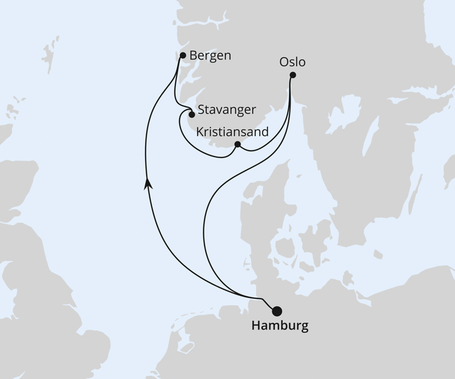 Wer eine Nordsee-Kreuzfahrt bucht, kann aus einem umfangreichen, qualitativ hochwertigen Angebot auswählen. Für jeden Geschmack ist das Richtige dabei. Von Kurzkreuzfahrten an die Nordsee (sogenannte „Schnupperkreuzfahrten") bis hin zu mehrwöchigen Seereisen gehören zum Programm der großen Reedereien wie AIDA, TUI Cruises, Plantours und Costa. Als Abfahrts- oder Zielorte der Nordseekreuzfahrten eignen sich viele Häfen. In Deutschland sind vor allem Bremerhaven, Hamburg und - über seine Verbindung durch den Nord-Ostsee-Kanal – Kiel beliebte Ausgangspunkte. Sie sind „vor der eigenen Haustür“ gut und schnell zu erreichen. Kreuzfahrten auf der Nordsee ab Hamburg führen zum Beispiel über Oslo und Bergen in Norwegen oder über Großbritannien.