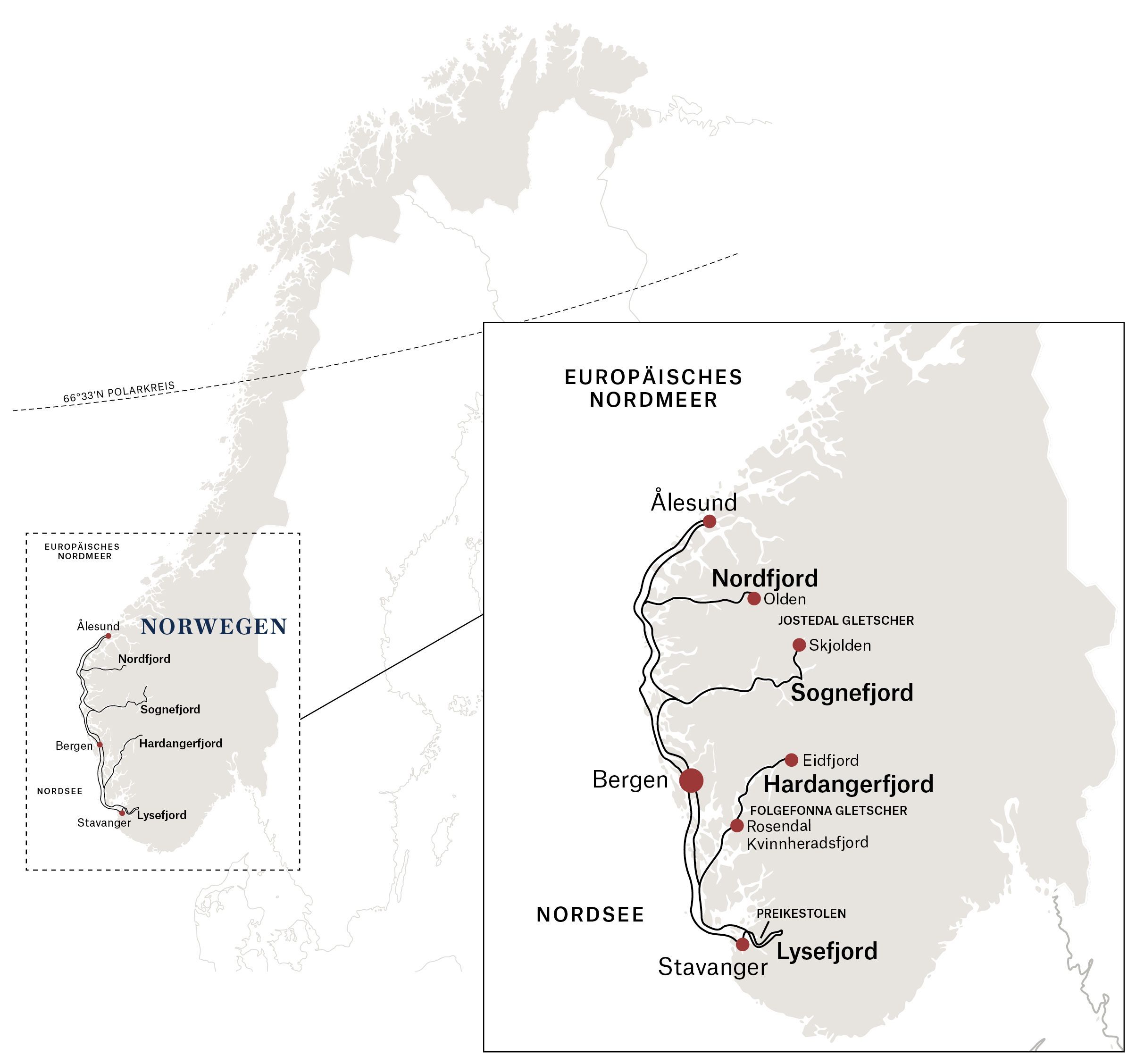 Entdecken Sie die vielfältigen Reiseziele in Norwegen per Schiff. Meist beginnen Norwegen Kreuzfahrten in Kiel, Hamburg oder Bremerhaven - sehr praktisch: für Ihre Kreuzfahrt nach Norwegen brauchen Sie keinen Flug. Nach einem Seetag auf Ihrer Reise ist Norwegen erreicht. Auf einer Kreuzfahrt Fjorde satt erleben - Das ist das Ziel einer Norwegen Seereise. Das Spektakel aus einzigartigen Naturschönheiten, imposanten Tälern, tosenden Wasserfällen und blühenden Wiesen kann beginnen. Die Aussichten sind atemberaubend, denn die Küste des Königreichs ist die längste und stark zerklüftetste der Welt. Anteil daran haben die Fjorde: Meeresarme, die weit ins Festland hineinreichen. Die Ufer sind schwer zu besiedeln, da die Hänge oft sehr steil sind. Der wohl bekannteste Fjord ist der Geirangerfjord. Doch nicht nur atemberaubende Natur können Sie während Ihrer Norwegenreise entdecken. Und wenn Sie schonmal da sind, bieten sich noch weitere tolle Ziele im Anschluss an Ihre Norwegen-Kreuzfahrt an. Wie wäre es z.B. mit dem nahegelegenen Dänemark? Auch eine Ostsee-Kreuzfahrt oder eine Kreuzfahrt nach Island lässt sich wunderbar an Ihre Schiffsreise anschließen.
