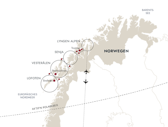 Verpassen sollten Sie auch nicht die Lofoten, mit ihrer schroffen und zugleich sagenhaften Berglandschaft sowie Tromsö mit seiner architektonisch ungewöhnlichen Eismeerkathedrale.