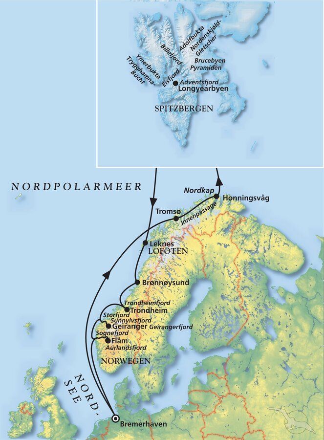 Kann es noch weiter gehen? Ja es kann - entdecken Sie auf einer Kreuzfahrt Spitzbergen. Ihr Schiff geht vor Anker und Sie entdecken mit Zodiacs die Umgebung: unberührte Landschaften, schillernde Gletscher, seltene Vögel, scheue Polartiere und die taghelle Mittsommernacht - ein unvergesslicher Traum.