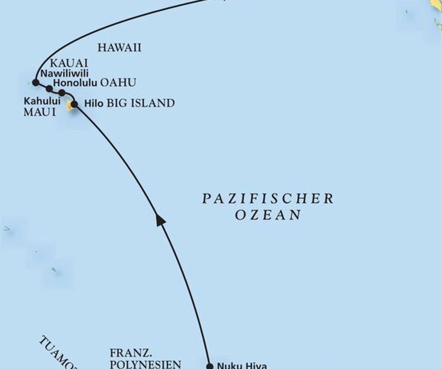 Im südlichen Bereich des Pazifischen Ozeans, in der Südsee, befinden sich unzählige traumhafte größere und kleine Naturschönheiten, wie beispielsweise die Archipele Polynesien, Mikronesien und Melanesien und paradiesische Inseln wie Fidschi oder Bora Bora. Diese magischen Orte eignen sich perfekt für Landgänge während einer Kreuzfahrt. Wunderschöne palmengesäumte, weiße Strände und Buchten, Lagunen und Korallenriffe sowie traumhafte Städtchen und Orte können Sie hier bewundern. Viele Schiffsreisen starten oder enden in Papeete – der Hauptstadt Tahitis – und führen über Bora Bora über die Cook Inseln weiter bis nach Fidschi oder sogar bis nach Australien. Auch im Urlaubsparadies Hawaii verwirklichen sich Inselträume, wo Sie sich nach hawaiianischen Ukulele-Klängen und einer herzlichen Begrüßung mit Blumenketten schnell wie daheim fühlen.
