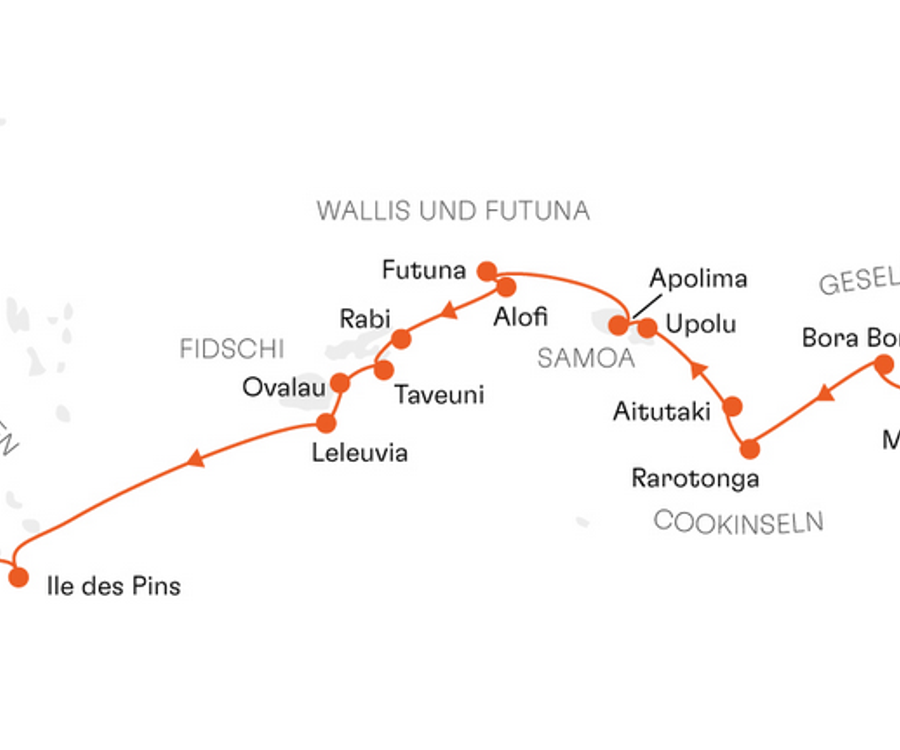 Fidschi verführt Sie mit seinen Palmenstränden, den Korallenriffen und den hübschen Fischerdörfchen. Hauptattraktion auf Bora Bora ist die Lagune mit der atemberaubenden Unterwasserwelt. Am besten erlebt man diese in einem Glasbodenboot oder beim Schnorcheln. Auf der Doppelinsel Tahiti wird das Perlenmuseum oder ein Bummel durch die Markthalle empfohlen – oder Sie erkunden die tropische Vegetation. Neben einheimischen Delikatessen kann man hier auch verschiedene Souvenirs erwerben. Aus diesem Grund ist Papeete – die Hauptstadt von Tahiti – ebenfalls auf den meisten Touren ein Stopp. Im Königreich Tonga erleben Sie die exotischen Traditionen und mitreißende Lebensfreude, auf der Insel Ile des Pins genießen Sie das pure Südsee-Feeling. Bestaunen Sie die Südsee, die der Maler Paul Gauguin einst malte: Einzigartig, wunderschön und traumhaft.