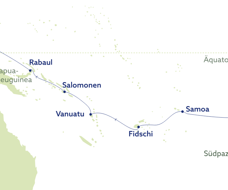 Eine Kreuzfahrt ist eine gute Möglichkeit, die Vielfalt des Südpazifiks kennenzulernen. Wie wäre es zum Beispiel mit einer Schiffsreise zu den Archipelen mit Oceania Cruises? Von Sydney aus fahren Sie nach Neukaledonien, Fidschi und Tonga bis nach Französisch Polynesien. Dabei genießen Sie luxuriöse Annehmlichkeiten und ein abwechslungsreiches Unterhaltungsprogramm. Auch Hapag-Lloyd Cruises bietet Ihnen viele verschiedene Kreuzfahrten durch die Südsee an: Hier geht es zum Beispiel von Papeete aus zu den Cook-Inseln, nach Samoa, Fidschi, Vanuatu und Neukaledonien bis nach Cairns – oder von Papeete zu den Pitcairninseln und Osterinseln bis nach Chile.