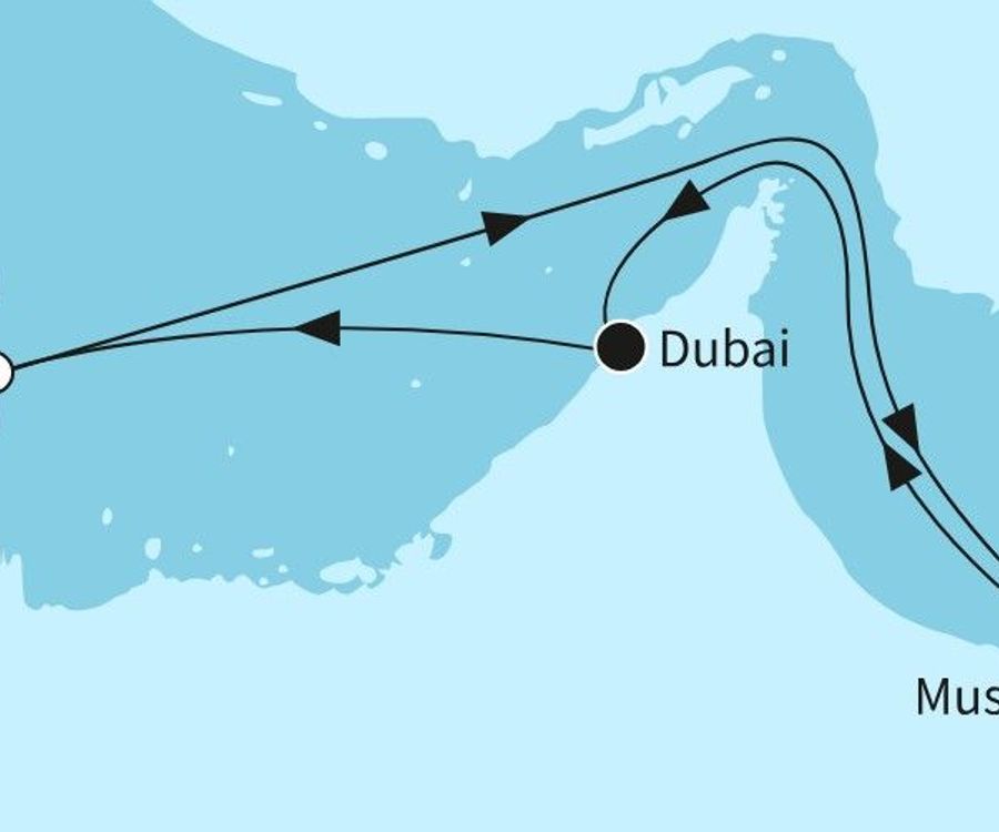Das Emirat Dubai liegt auf der Arabischen Halbinsel am Persischen Golf und ist mit Abu Dhabi das Emirat mit den meisten Einwohnern. Entdecken Sie bei Ihrer Dubai-Kreuzfahrt eine Stadt der Superlative, die kaum zu beschreiben ist. Wagen Sie den Aufstieg auf den Burj Khalifa, das größte Gebäude der Welt. Besonders im Morgengrauen oder bei Sonnenuntergang ist der Blick vom Burj Khalifa eine Sensation. Dubais "The Palm" bezeichnet eine aus zwei Inselgruppen bestehende "Palme", künstlich angelegt im Persischen Golf. Auf Ihrer Dubai-Kreuzfahrt können Sie viele Landausflüge buchen, egal wofür Sie sich interessieren. Ist Ihnen die Stadt zu schnell und zu laut? Wie wäre es mit einer Wüstensafari im Geländewagen oder auf einem Kamel, eine Fahrt über die roten Dünen vor Dubai oder einer Fahrt auf dem Dubai Creek? Dubai ist voller historischer und moderner Sehenswürdigkeiten und bietete jede Menge Möglichkeiten für einen Landausflug. Sie möchten Ihren Aufenthalt verlängern? Mit unseren Kreuzfahrten mit Vor- und Nachprogramm ist das kein Problem. Mit seinem Facettenreichtum hat Dubai sowohl für Entspannungssuchende als auch für Abenteurer das richtige Angebot. Sie suchen eine Dubai-Kreuzfahrt mit Flug oder suchen eine Kreuzfahrt nach Dubai mit Vorprogramm? Entdecken Sie unsere Angebote nach Dubai.