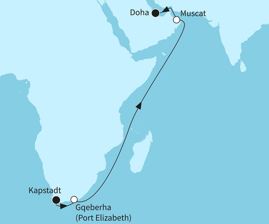 Doha, die Hauptstadt Katars, ist für beeindruckende moderne Architektur und die spektakuläre "The Pearl-Qatar", eine künstliche Insel mit exklusiven Wohnungen, Boutiquen und Yachthäfen, bekannt. Sehenswert ist zum Beispiel das Museum of Islamic Art, welches eine beeindruckende Sammlung islamischer Kunst und Artefakte aus der ganzen Welt beherbergt. Sie suchen das Abenteuer? Wie wäre es mit einem Wüstenausflug, einer Quad-Tour oder einer Kamel-Safari? Natürlich hat Katar auch kulinarisch einiges zu bieten: Mezze, gegrilltes Fleisch, Hummus und Kebab sind nur einige der lokalen Köstlichkeiten.