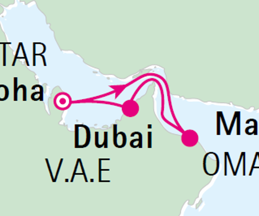 Der Oman ist das das Land des Weihrauchs und der Silberschmieden. Die Hauptstadt des Omans ist Maskat. Entdecken Sie historische Moscheen und interessante Museen, bewundern Sie das Royal Opera House und lassen Sie sich von der Stadt inspirieren. Die Wüste Rub al-Khali im Süden und das Hadschar-Gebirge im Norden sind nur zwei Beispiele für die atemberaubende Natur des Landes. Besucher können historische Stätten wie die Festung Nizwa, die Ruinen von Bahla oder die UNESCO-Welterbestätten von Bat, Al-Khutm und Al-Ayn erkunden.